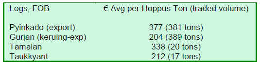 It is not clear how much plantation timber has been harvested and traded in Myanmar. Most people from the timber trade tend to connect plantations with natural forests. This perception is due to the observation that teak and other valuable species are planted to compensate for the natural forests. Sales of poles and posts are the only way to trace teak from plantations in the timber trade. In other cases, it is necessary to devise a statistical system by respective departments to differentiate which trees are from plantations and which are from natural forests.