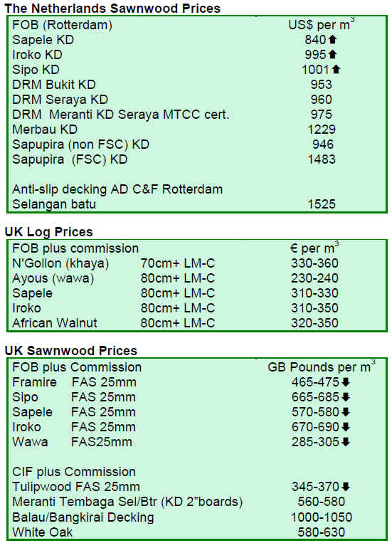 UK traders more optimistic UK hardwood importers, on the other hand, are more optimistic about the state of the trade now than they were at the beginning of the year. A new market environment prevails with little or no speculative buying and stocks are generally being kept at a much lower level than before the recession. The trade is now very heavily reliant on just-in-time orders from the few large UK and continental importers willing to carry stock. Joinery companies are not as busy as they would like and they have fewer projects in the pipeline. However, there continues to be a steady trickle of demand for repair and renovation work. Joinery demand in London is boosted by the 2012 Olympic developments, many of which are now reaching the joinery finishing stage.