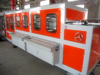 Vacuum Forming Machine (fast food box production line) is an all-powerful thermal forming machine with integration of vacuum forming ,press forming and synthetical forming .It can be used for processing many kinds of plastic sheet .The machine adopts digital system , fully automatic PLC mechanical and electronic integration control ,touch screen to control the working programme .It is easy to operate and of high efficiency .It features reliable stability ,large forming area ,fast speed highly automation and economic on manpower .