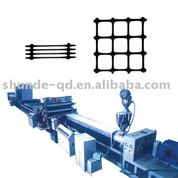 Uniaxial and Biaxial Geogrid Production Lines Main technical specifications for uniaxial geogrid extrusion line: 1) Model of extruder: SJ-150 x 25 2) Main motor power: 90kW 3) Production capacity: 20 - 300kg/h 4) Drawing speed: 2 - 10m/min 5) Punching frequency: 35 - 65 times/min 6) Total weight of set: 20,000kg 7) Product width: 1,000mm - 2,500mm 8) Overall dimensions (L x W x H): 40 x 3 x 2.6mMain technical specifications for biaxial geogrid extrusion line: 1) Model of extruder: SJ-150 x 30 2) Main motor power: 160kW 3) Output capacity: 330 - 550kg/h 4) Drawing speed: 1 - 5m/min 5) Punching frequency: 35 - 65 times/min 6) Product width: 1,000mm - 5,000mm 7) Overall dimensions (L x W x H): 70 x 7 x 2.6m PP/PE Uniaxial and Biaxial Geogrid Production Line Geogrid production Line If you have any inquires or interests,please feel free to contact us!