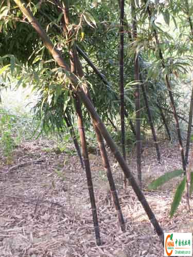 紫竹   又名黑竹、乌竹。杆高1—10米,径1—4厘米,新杆有细毛茸,绿色,老杆则变为棕紫色以至紫黑色。择玫瑰紫色,背部密生,无斑点;择耳镰形、紫色;择舌长而隆起;择叶三角状披针形,绿色至淡绿色。叶片2—3片生于小枝顶端,叶鞘初被粗毛,叶片披针形长4—10厘米,质地较薄。散生竹。秆高1~10m,径0.5~5cm。新竹绿色,当年秋冬即逐渐呈现黑色斑点,以后全秆变为紫黑色。有两个品种,秆一年变紫和三年变紫