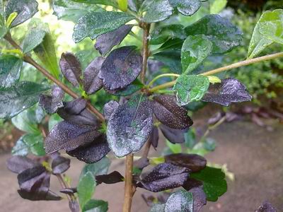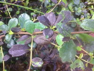 (2)发病规律:以菌丝体在病叶中越冬,次年当气温升至 20℃,相对湿度80%以上时形成孢子,借雨水传播。湿度25— 27℃,高湿条件下最有利于发病。全年以梅雨季节和秋雨季节发生最盛。扦插茶园、台刈茶园,叶片幼嫩,水分含量高,有利于发病。偏施N肥茶园发病也重。