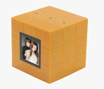 Features Package Contents Digital Picture Frame USB Cable Base Stand Specification Display Color: 256 K True Colors Image Resolution: 128 x 128 File Format: BMP, JPEG Features and Options: USB Connection Clock - Digital Clock, Analog Clock, Set Clock, Calendar Slide Show -1 to 15 seconds Auto Off - 1 to 30 minutes Backlight Computer Compatibility: WIN2000, XP, Vista, Windows7, MAC OS X+ (32 bit OS versions only) Power: Internal Rechargeable Battery Connection: Via USB On Board Buttons: Menu/OK, Left, Right, Reset Dimensions: L: 58 x W: 58 x H: 58 (mm) Menu Language: English